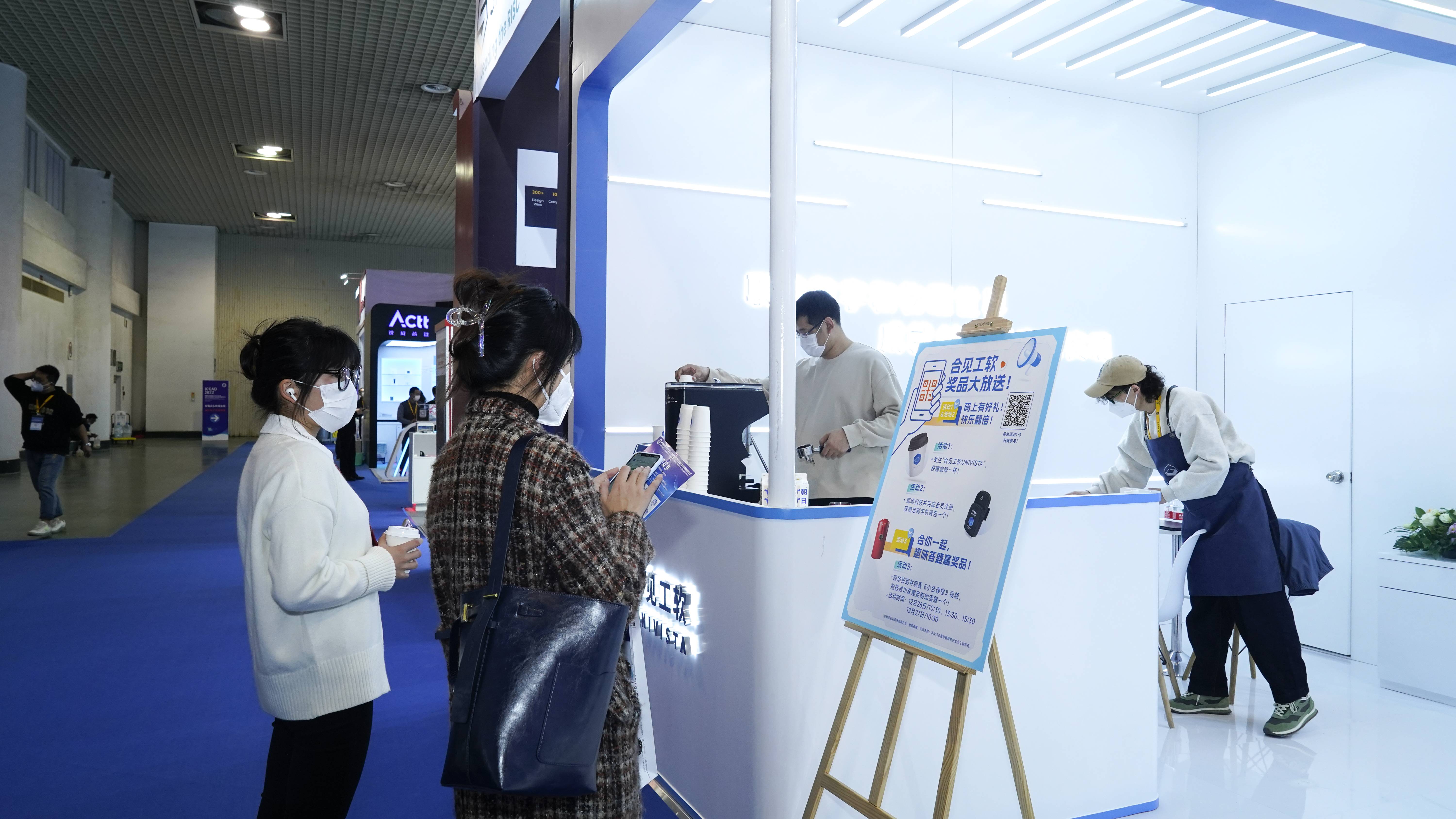 合见工软携54平酷炫展台亮相ICCAD 2022,开展冬日暖意现煮咖啡、码上有好礼、趣味答题等展位活动,吸引大量参会者前往展位打卡参观。