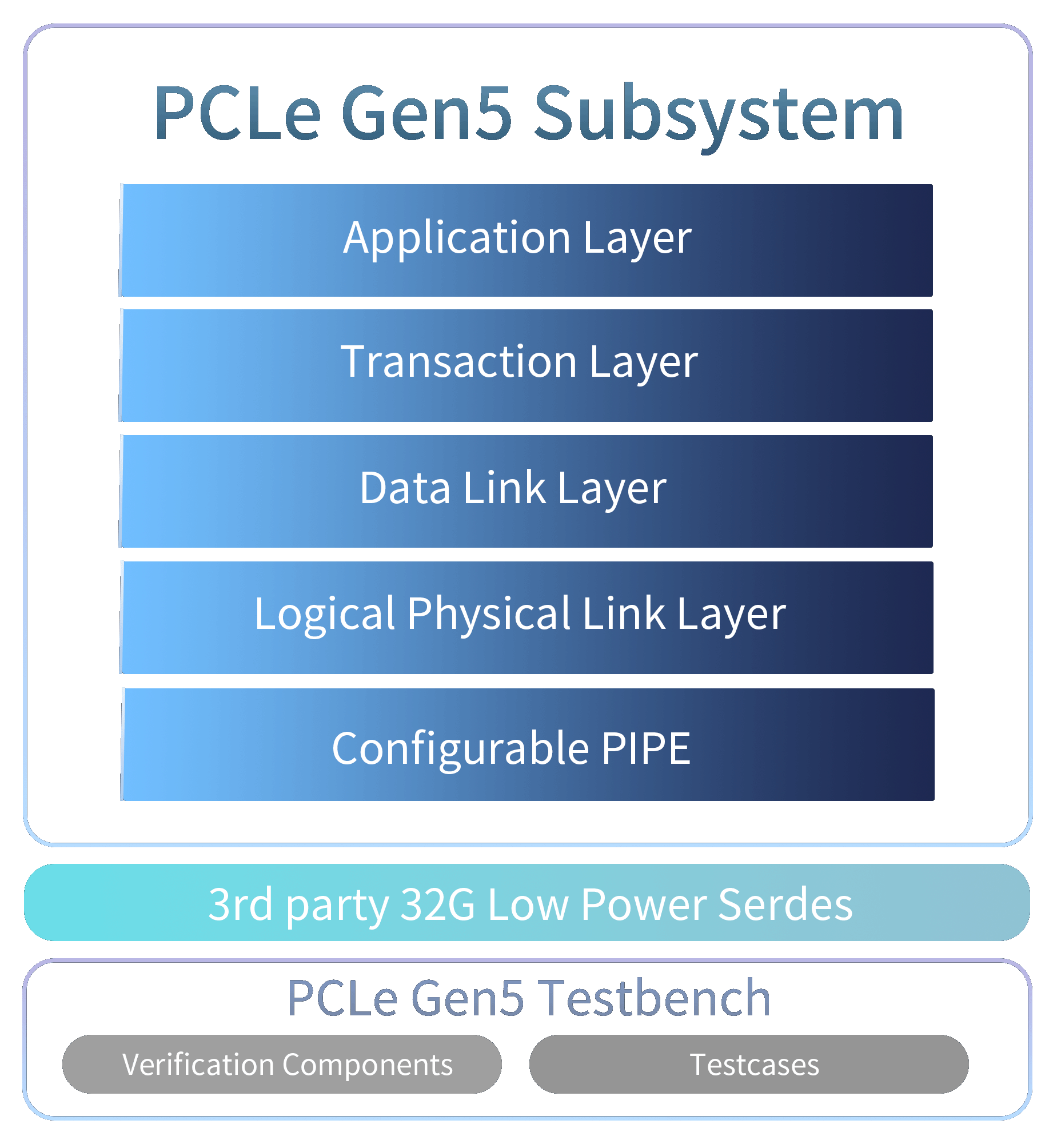 UniVista PCIe Gen5 IP解决方案具有最高支持512G带宽的卓越性能,向下支持PCIe Gen1 至Gen4的特性,可帮助芯片设计人员实现高带宽片间传输需求,可选AXI接口和TL FIFO接口,单lane controller + PHY的功耗小于350mw,提供了可靠、高速、低功耗的高性能的解决方案。