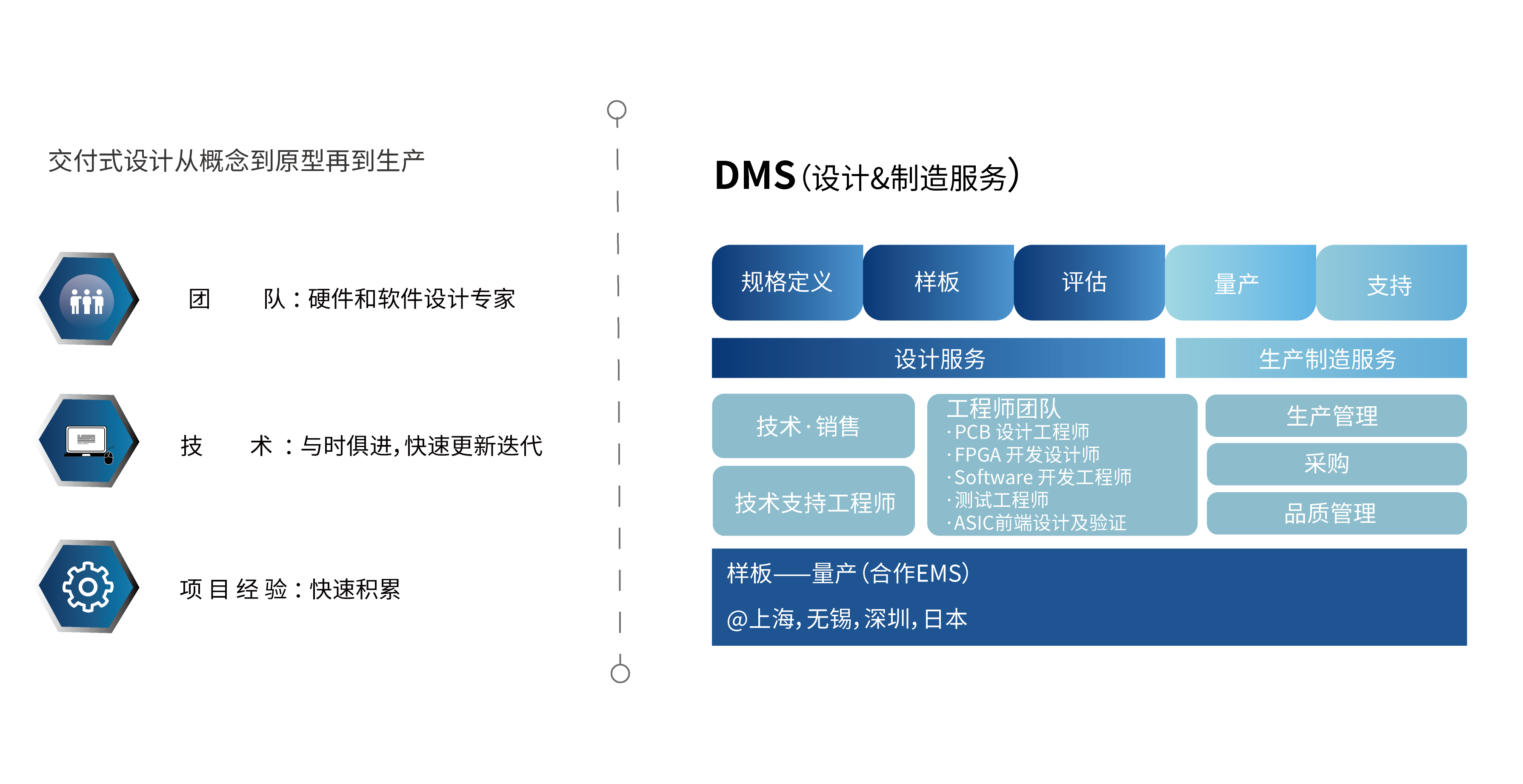 合见工软可提供高附加值、周期短、信赖度高的设计及制造服务。上海、无锡两大技术核心团队,专注服务于硬件、嵌入式软件开发设计,对硬件、嵌入式软件系统开发的管理、流程、调试等有着长期、深入、全面地理解和完整的把握。合见工软广泛运用的技术领域,能够准确把握并满足客户现实或潜在的需求,建立了针对行业企业需求特点的服务开发体系,提供高度集中面向任务的现场或场外服务,专业的FPGA工程师在您设计周期内的任何时间都能提供快速的服务。